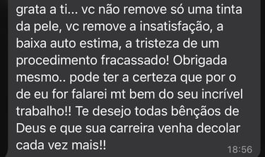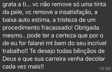 Em 2024, dei um passo ainda maior: adquiri o Laser Quanta Q Plus C, o único laser de rubi puro disponível no estado do Rio de Janeiro, tecnologia que garante resultados superiores na remoção eficaz de tatuagens coloridas. Essa inovação nos posiciona como referência no mercado e eleva o padrão de excelência da nossa clínica.